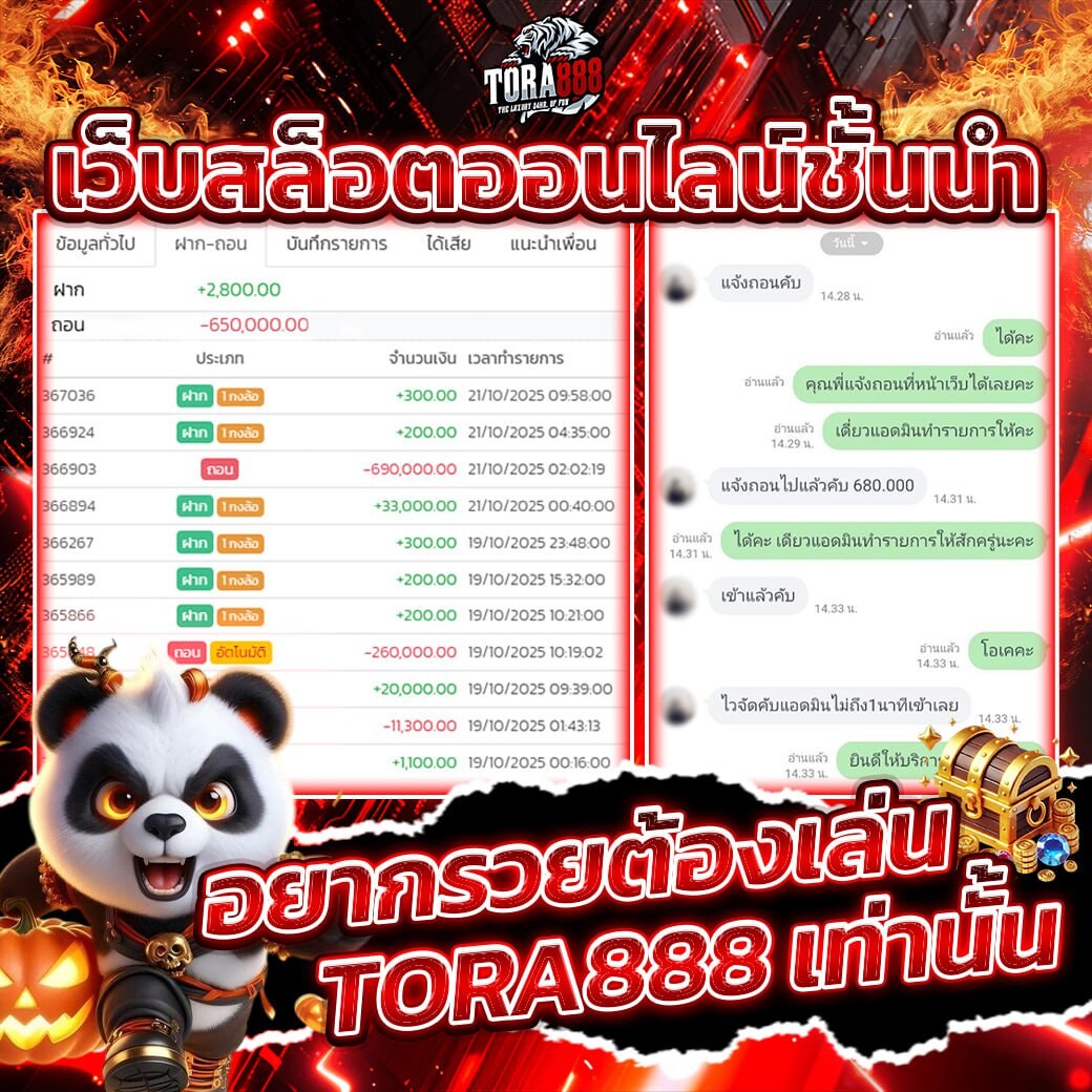 อีกหนึ่งข้อดีของเว็บ TORA888S.COMมีระบบฝากถอนด้วยระบบอัตโนมัติรวดเร็วทันที ภายใน 5 วินาทีเท่านั้น โอนปุบได้ปั๊บ พร้อมน้องๆแอดมินคอยแก้ปัญหาให้ท่านได้ตลอด 24 ชม. ไม่ว่าจะฝากไม่เข้า ถอนเงินไม่สำเร็จ หรือติดปัญหาต่างของทางค่าย แม้กระทั้งสอบถามค่ายไหนแตกดี น่าเล่น แอดมินก็ยินดีจะให้บริการท่านไม่กั๊กใดๆทั้งสิ้น ลูกค้าได้รับเงินรางวัลแจ็คพอตเรายินดีให้ท่านเสมอ ไม่ว่าจะถอนเท่าไหร่ก็ตาม  โปรโมชั่นของเราก็ปังมากๆ ยกตัวอย่างเช่น คืนยอดเสีย แนะนำเพื่อนได้รับยอดเสีย โปรสมาชิกใหม่  และอื่นๆอีกมากมายให้ท่านได้ติดตามที่ AKABET